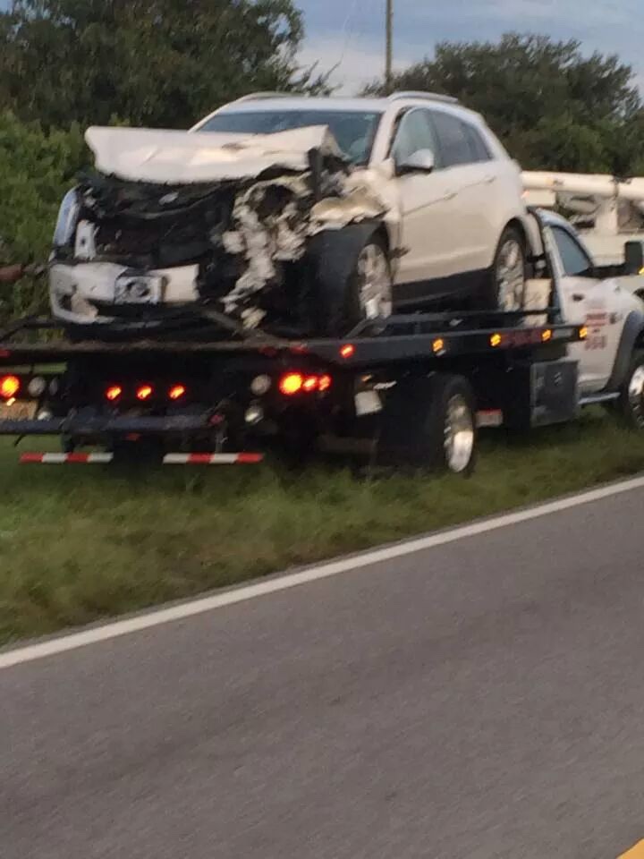 There was a lot of 5 o’clock traffic. The opposite lane was starting to pile up and stop. I’m cruising by, all of a sudden a work truck carrying lawnmowers came into my lane. They were coming straight at me, it happened so fast I had no time to react. They hit my Cadillac SUV head-on.