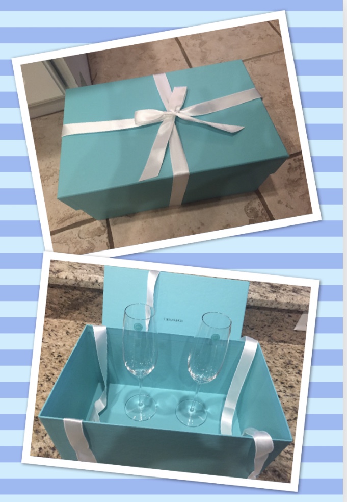 Let’s talk about champagne glasses, shall we? My absolute, favorite glasses are obviously Tiffany and Co. I feel so classy drinking my Andre Brut from my Tiffany’s glass. They are crystal and stunning. I’m in love! But, I have 3 children so when I finally get to relax and pour a glass of bubbly, I’m exhausted. I like to use my stemless champagne flutes more often and save my fancy Tiffany’s for special occasions.