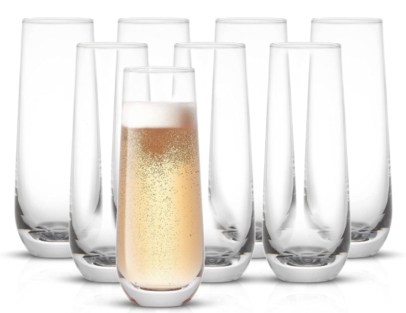 3. JoyJolt Milo Stemless Champagne Flutes Set of 8 Crystal Glasses. 9.4oz Champagne Glasses. Prosecco Wine Flute, Mimosa Glasses Set, Cocktail Glass Set, Water Glasses, Highball Glass, Bar Glassware