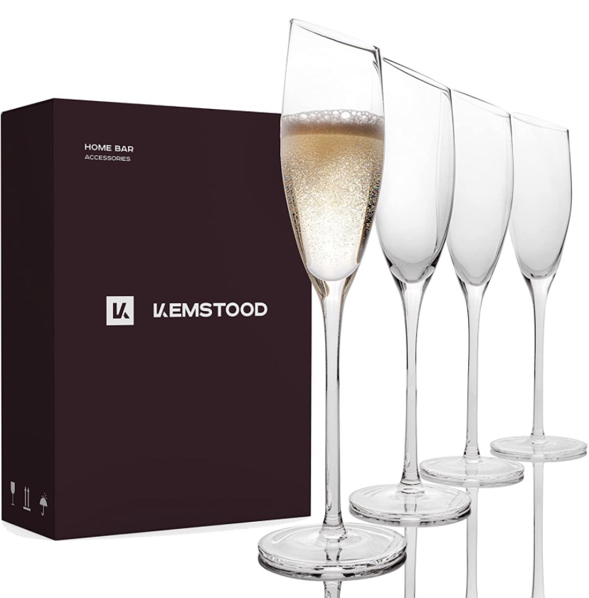 6. Vemstood set of 4 – Modern Crystal Mimosa Glasses (6 Oz) for Sparkling Wine – Slanted Drinking Cup with Stem.