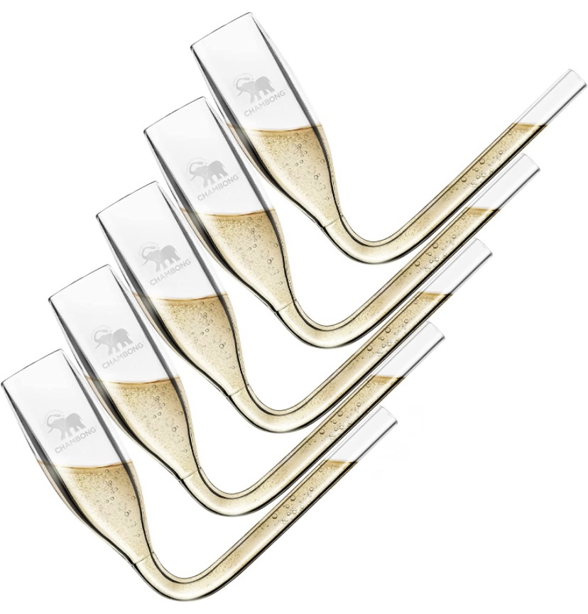 10. CHAMBONG Plastic Champagne Flutes – Champagne Shooter & Mimosa Glasses – Reusable Unbreakable Acrylic (6 oz. 5-Pc Set).