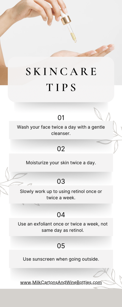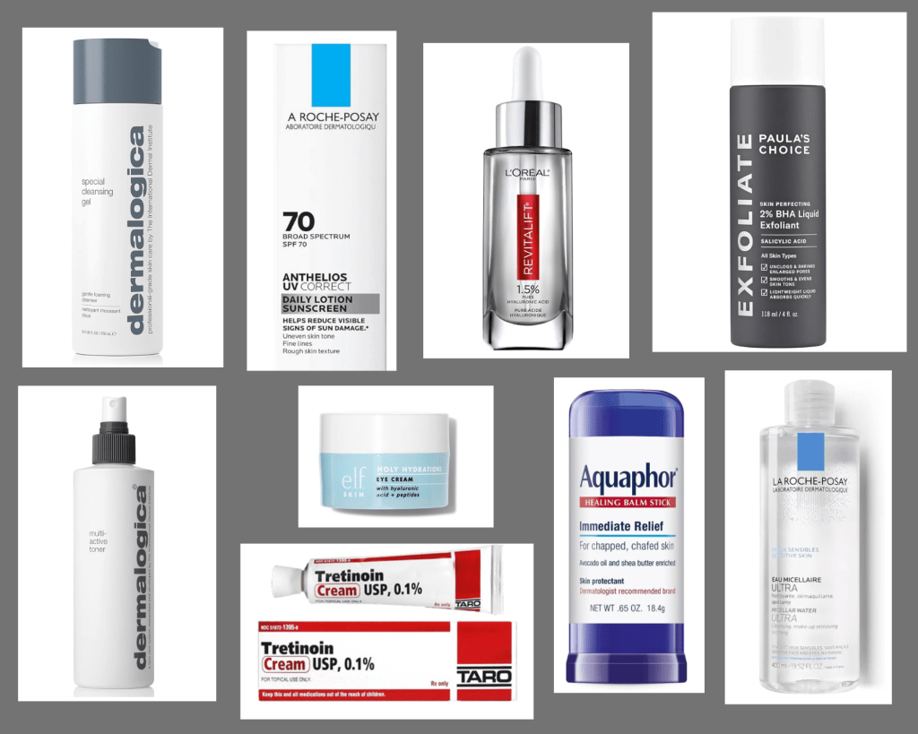 The dermatologist completed the skin screening and listened as I told him my areas of concern. I did end up getting biopsies for a few spots (luckily all benign!) I asked about Botox and he didn’t think I needed it, YET! He suggested retinol, specifically Tretinoin 0.1. He said “use a small amount at first, once a week then work yourself up to using more frequently. Make sure to moisturize as it can be drying.” I took the script and it stayed under the seat of my car for a few days. Then while deep into a skincare TikTok spiral, I remembered to get the script filled.
